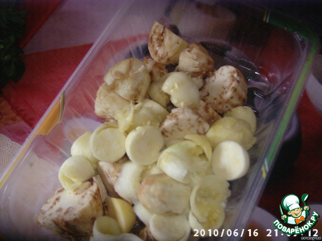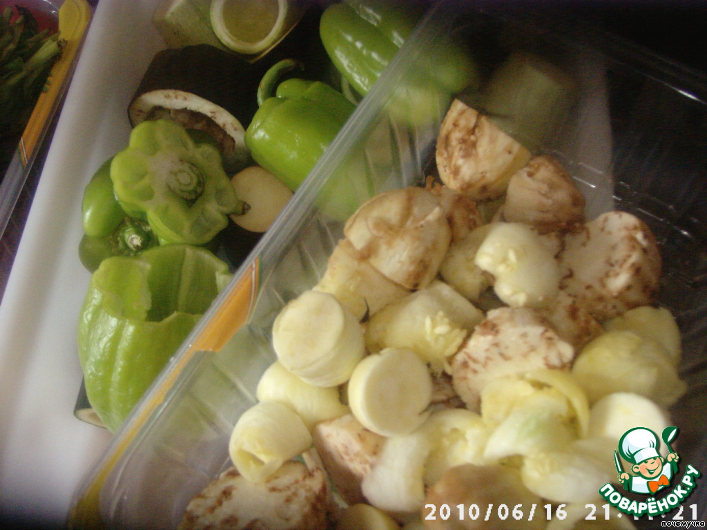 Лук (1/2 порции), сердцевину цукини, баклажан и помидоров(1/2)