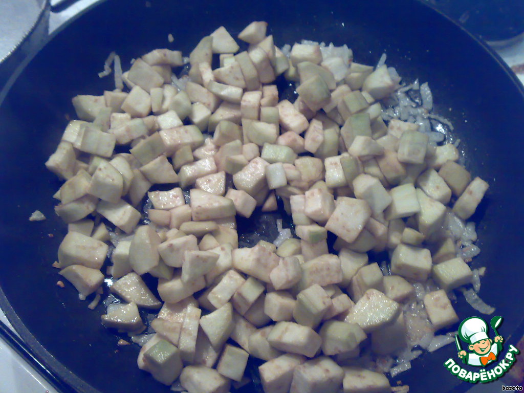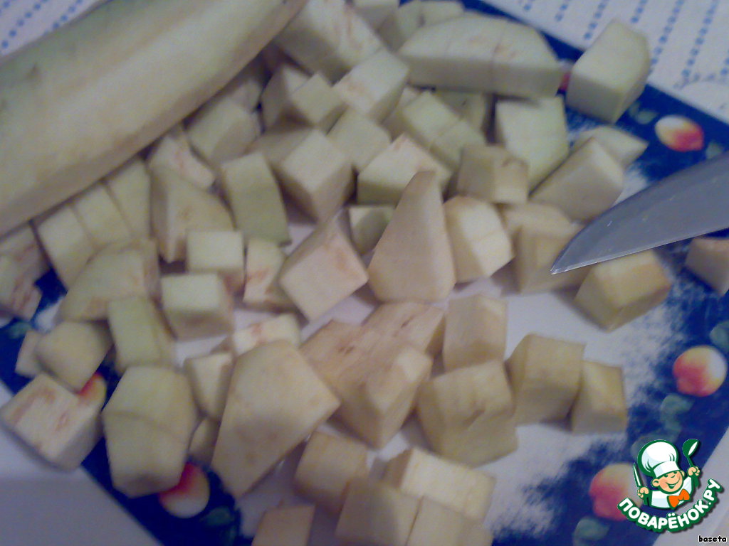 Баклажаны нарезаем кубиками, солим и оставляем избавляться от горечи.