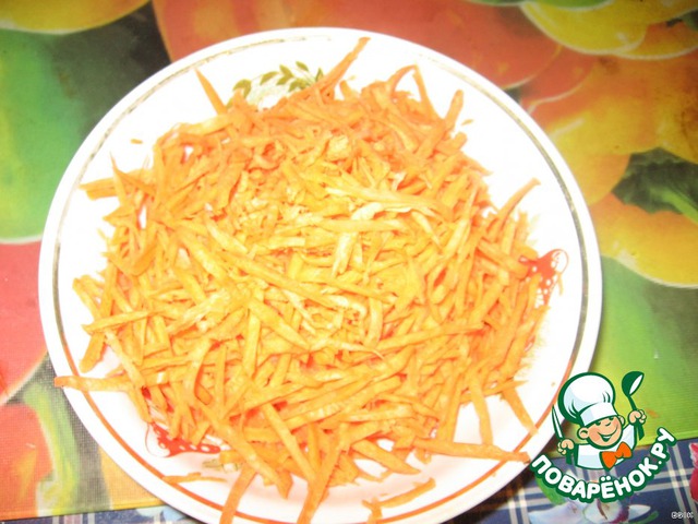 Трем морковь на терке для корейской моркови (или режем соломкой)