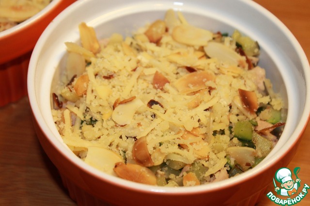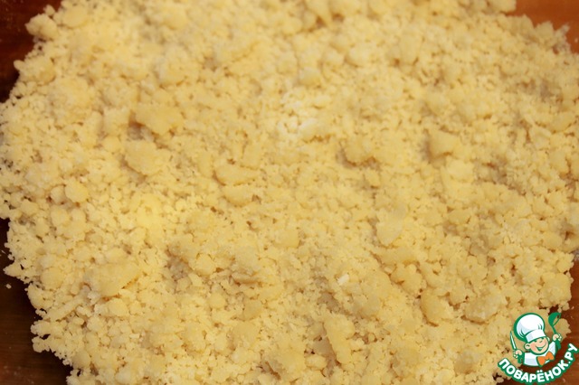 Посыпать масляно-мучной крошкой и запекать 20 минут при 180* С