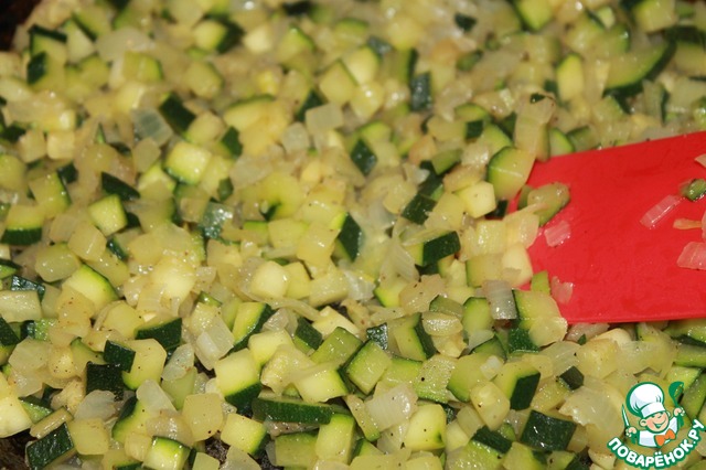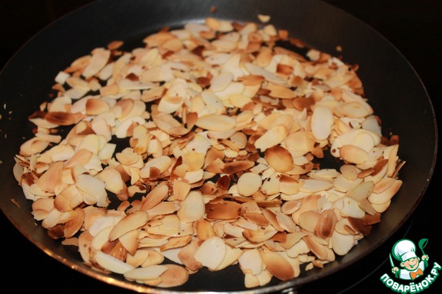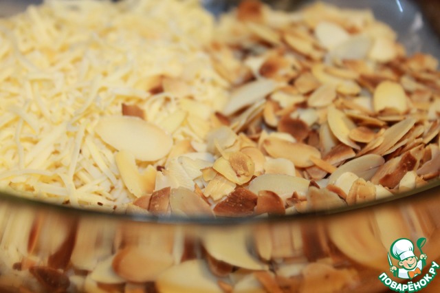 Добавить к ней обжаренные лепестки и натёртый на мелкой тёрке сыр и очень аккуратно перемешать