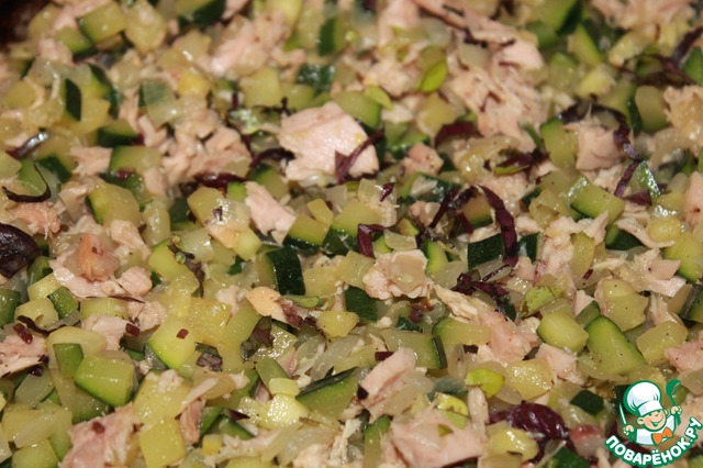 Добавить рыбу и базилик к обжаренным овощам, поперчить и посолить по вкусу.
