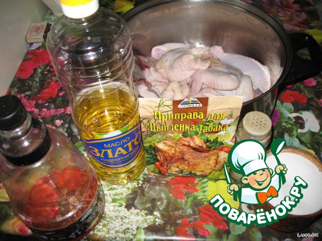 Время приготовления зависит от веса курицы. У меня цыпленок был не хилый - весом 1700г.