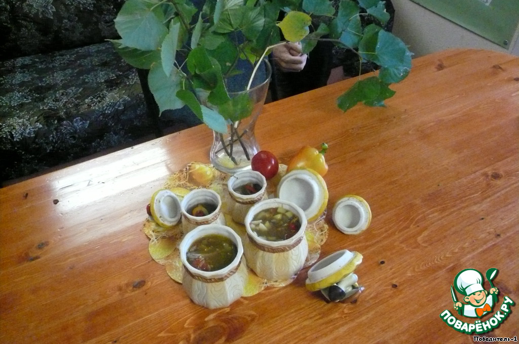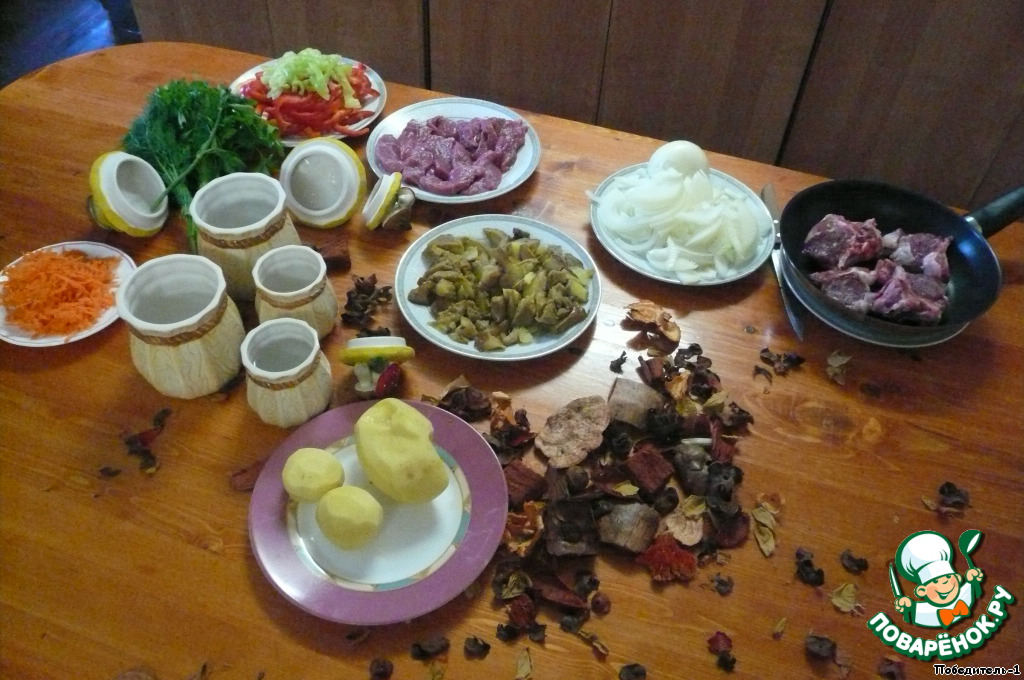 | Пришли дети из леса и очень проголодались. А бабушка в это время готовила в горшочках мясо с овощами и дарами леса на конкурс "Осеннее танго". Внуки обрадовались, потому что очень любят блюда с мясом. |