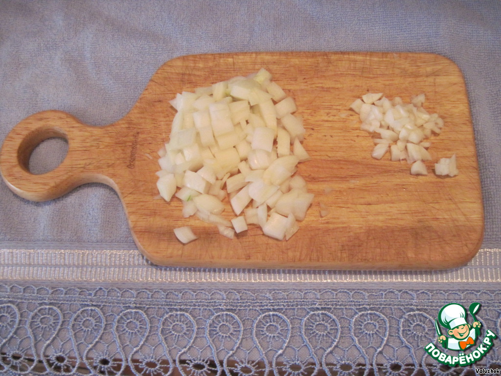Мелко порубите чеснок и нарежьте кубиками лук.