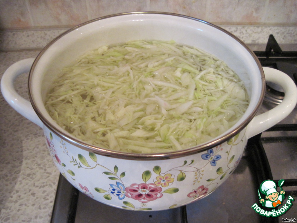 В 1,5 литровую кастрюлю налейте воды, положите молодую капусту и доведите до кипения, варите 2 минуты.