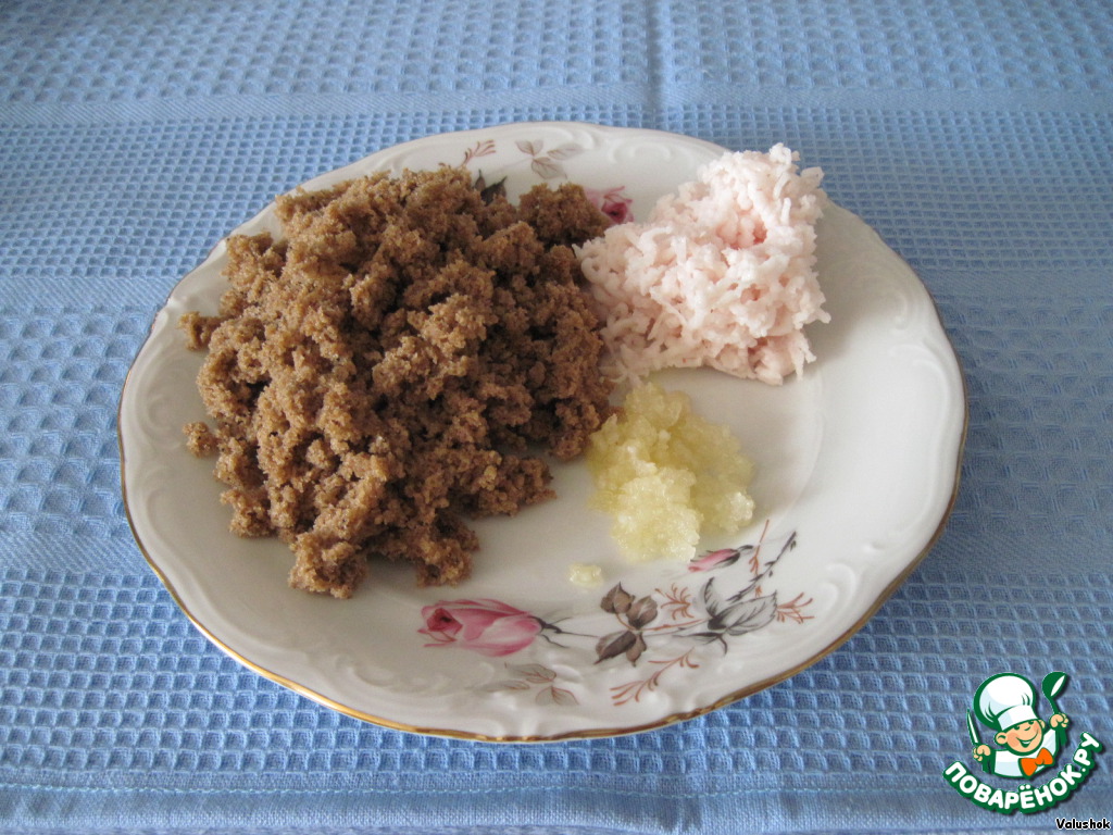 Мякиш хлеба разберите на крошки, натрите свежепросоленное сало на мелкой терке, измельчите чеснок.