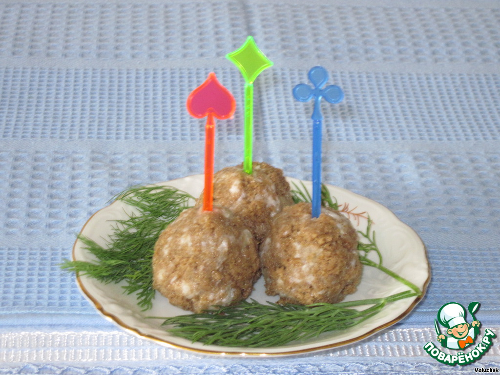 Скатайте шарики из этой массы и наденьте на шпажки. Получились импровизированные пампушки с чесноком для тех, кто кушает борщ из тарелочек.
