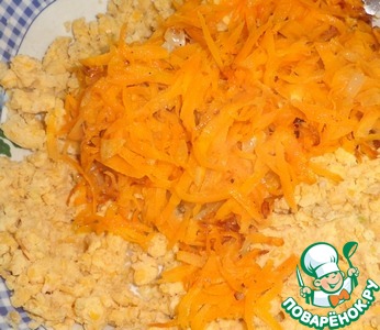 Добавляем яйцо, посолить и поперчить, перемешиваем.