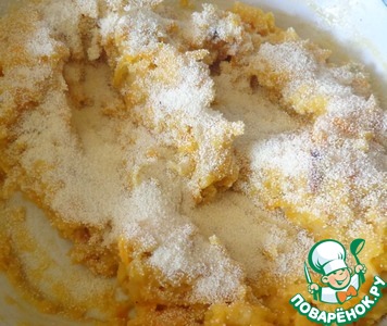 Добавляем манную крупу и хорошо перемешиваем до однородного состояния.