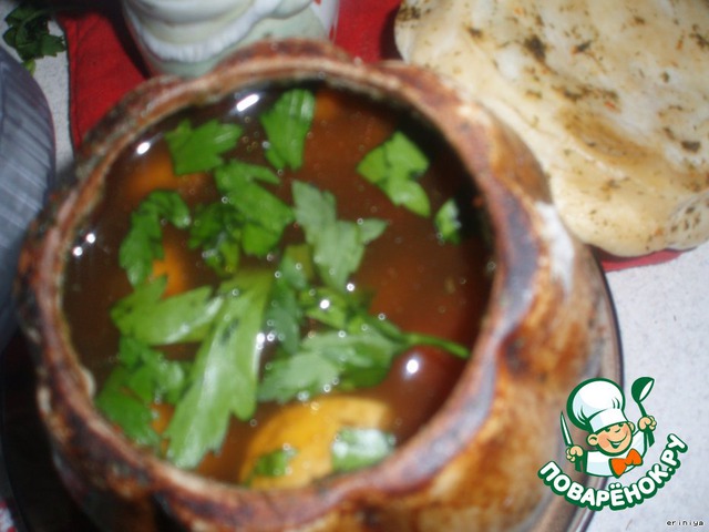 | Легкий, летний супчик с травами, с грибочками, маленькими кусочками мяска\\\\\\\\\\\\\\\\моя мама такие называет - кошачья приманка\\\\\\\\\\\\\\\\. Эмилька его обожает, если только он в горшочке... |