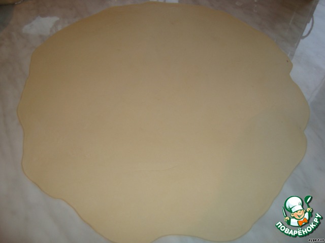 Раскатать тесто как можно тоньше, но не до прозрачности.