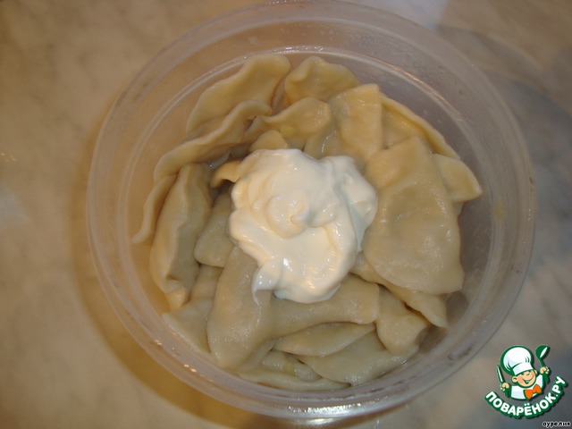 Залепить вареники привычным способом. Я это делала руками. Если кто-то хочет, может это делать на вареничнице.