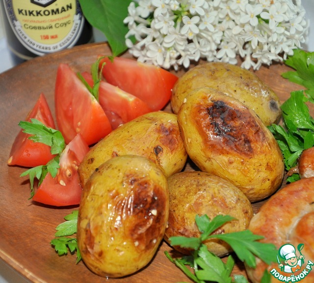 | Ароматный запеченный картофель с соевым соусом и лимонным соком. Приготовить можно дома в духовке или в углях на пикнике. |