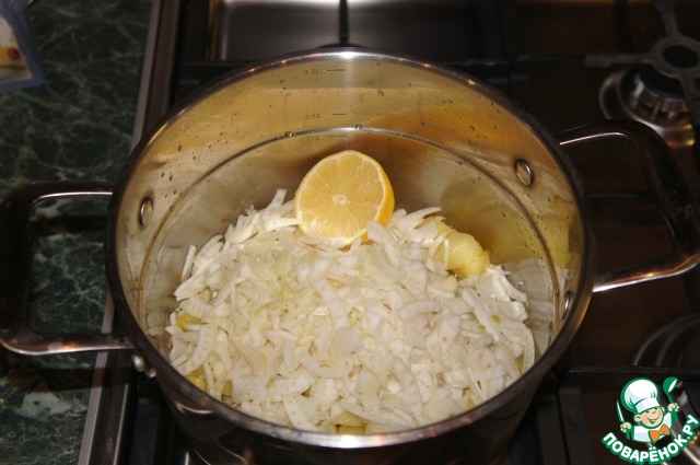 Достать лимон, а суп варить до готовности картофеля и фенхеля.