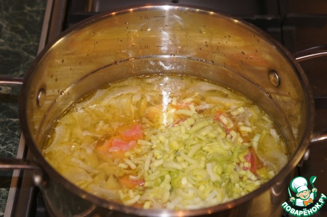 Суп довести до кипения, посолить, поперчить и варить еще пару минут.