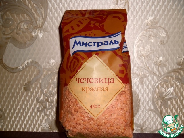 Вымыть в сите чечевицу и дать воде стечь. Я использовала красную чечевицу от Мистраль, она очень быстро готовится.