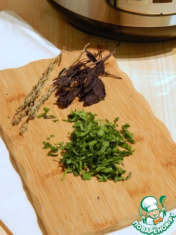 * У меня: петрушка - свежая, а тимьян и базилик - сушеные.