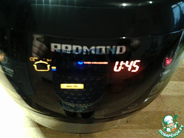 Отправляем чашу в мультиварку, время 45 минут, режим "Выпечка". После сигнала достаем чашу из мультиварки, даем кишу 15 минут " собраться с мыслями" и аккуратно вынимаем его из чаши при помощи полоски бумаги для выпечки.