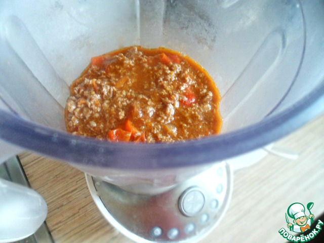 Затем снимаем с огня, даем минут 5-10 подстыть. Главное, чтобы можно было безбоязненно переложить все в блендер. Как только поняли, что вашему блендеру ничего не грозит, перекладываем туда соус и перемешиваем (перемалываем, взбиваем... как правильно называется то, что делает блендер?) до однородного состояния.