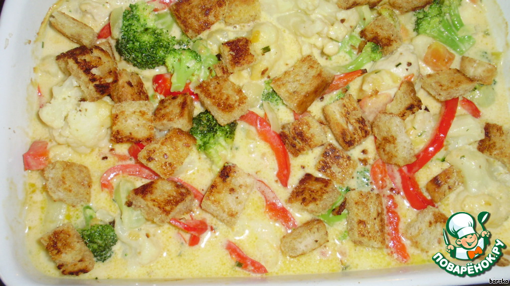 За 10 мин. до готовности запеканки, посыпать её сухариками