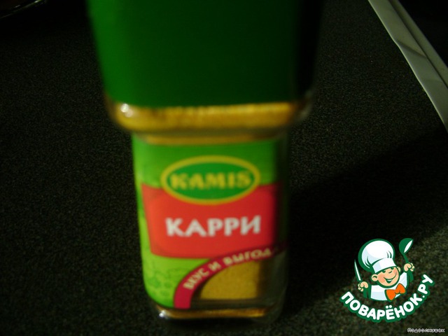 Сверху посыпать приправой "карри" по вкусу и хорошенько перемешать, через пару минут огонь выключить.