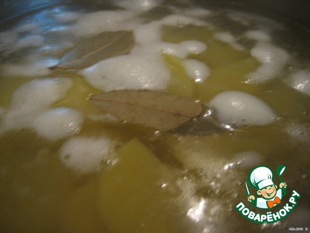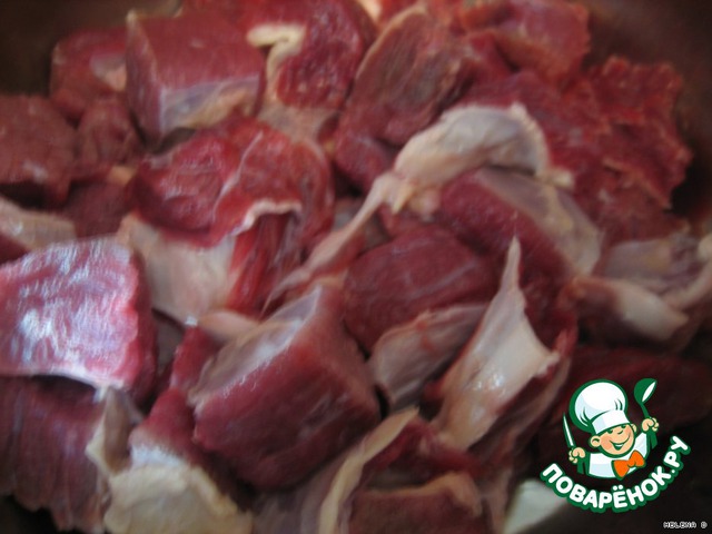 Поставить вариться мясо, порезанное как на гуляш, примерно на минут 40.