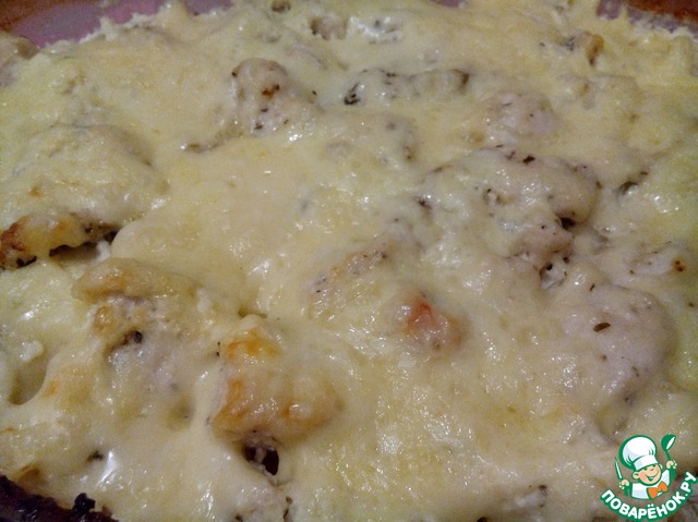 | В таком исполнении куриное филе получается очень сочным и мягким. Кроме того, это прекрасный источник легкоусвояемого белка, а приготовление в духовке, в отличие от жарки, позволяет сохранить максимум витаминов, избежав при этом появления в блюде вредных канцерогенных веществ. Так что вкусную картошку с куриным филе под сливочным соусом смело можно предлагать даже детям. А нежная сырная корочка уж точно никого не оставит равнодушным. |