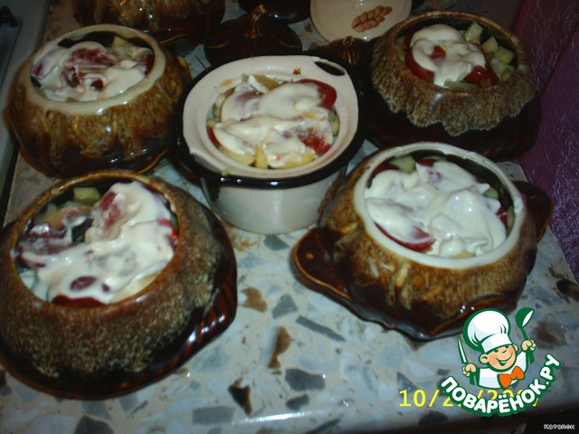Перед подачей открыть горшочек посыпать сыром и закрыть!