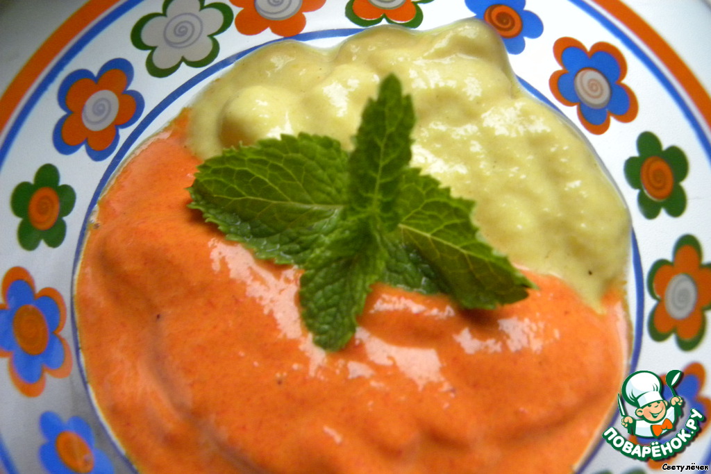 Затем сделать 2 вида пюре‚ посолить‚ поперчить и поставить в холод на 2 часа.