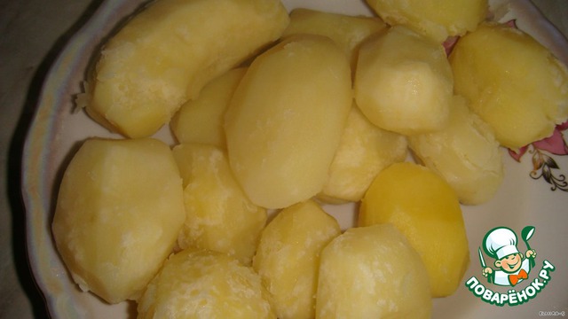 Очистите и отварите картофель в подсоленной воде.