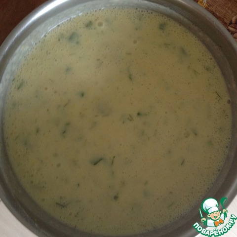 Блендером делаем пюре, добавляя Картофельный отвар, до консистенции жидкой сметаны.