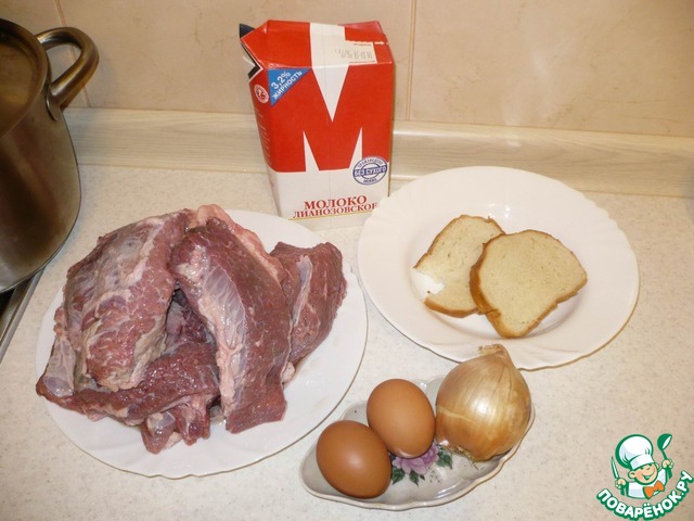 Я прокручиваю все вперемешку: Свинину и говядину, и постепенно добавляю лук, и замоченный хлеб с молоком.