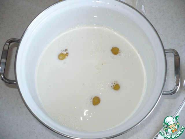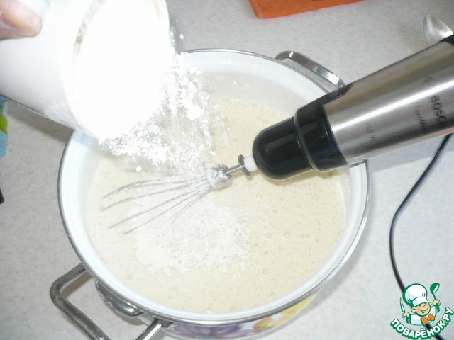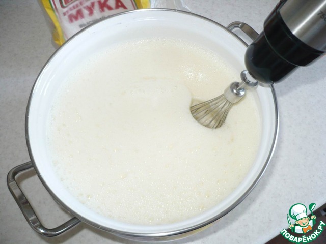 Затем, я добавила молоко. В молоко разбила яйца.
