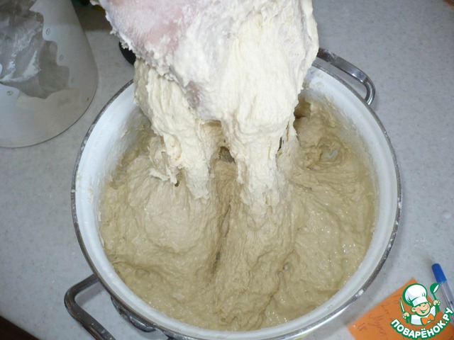 Замешать тесто необходимо так, чтобы оно не прилипало к рукам, и отставало от стенок кастрюли, чтобы из него можно было легко сформировать шар, чтобы потом с этим шаром было легко работать.
