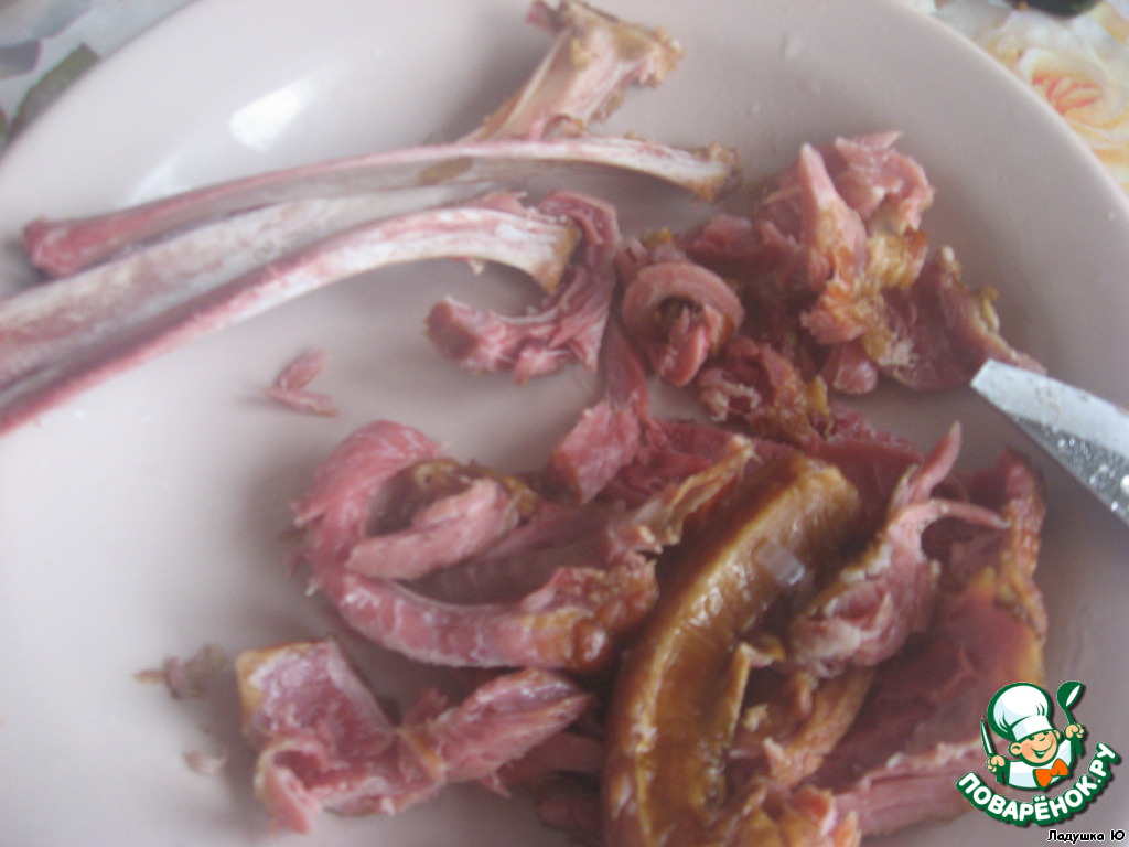 Достать кости и отделить мясо, измельчить.