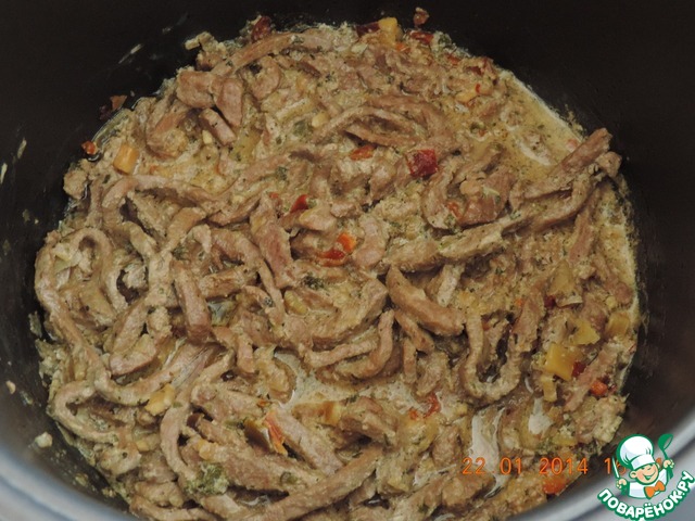 И сметанки, перемешиваем, закрываем крышку и выставляем программу "тушение" на час