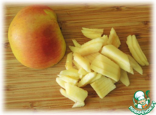Режем очищенное от кожуры и сердцевины яблоко некрупной соломкой.