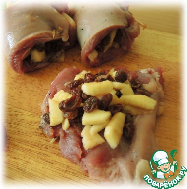 Рецепт "Филе индейки, фаршированное яблоками и изюмом":