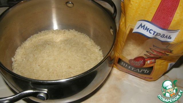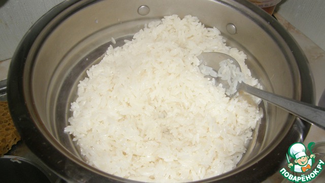Рис промыть и поставить варить в подсоленной воде до полуготовности