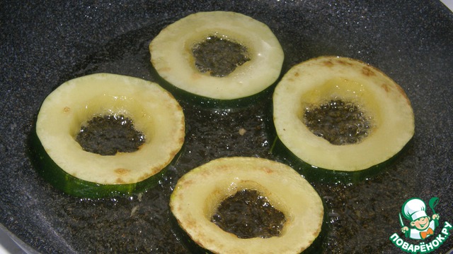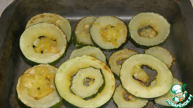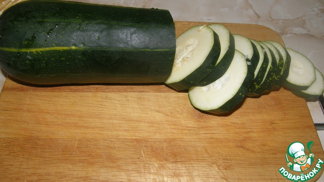 Кабачок помыть, нарезать кольцами, удалить семечки (я кабачок не чистила, т. к. он тонкокожий)