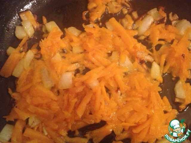 Свежую тыкву натираю на крупной терке. Лук я нарезаю мелкими кусочками.