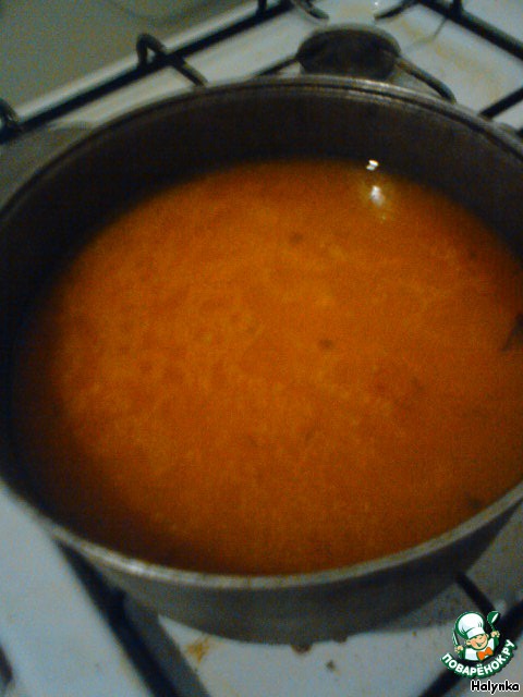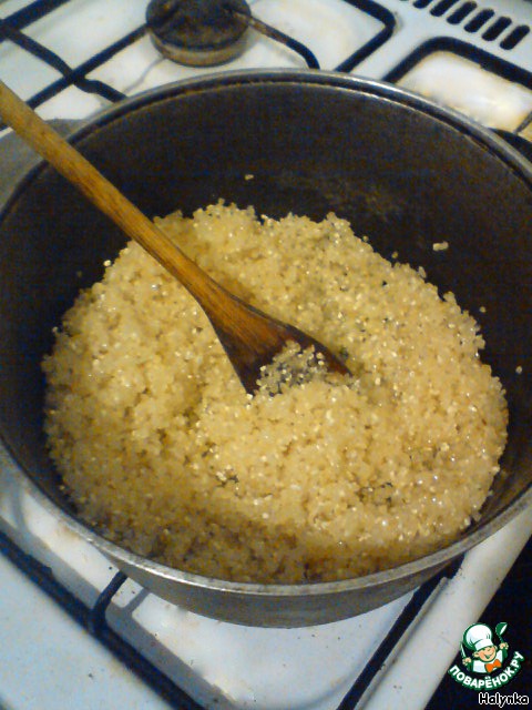 Все перемешать и залить бульоном или водой. У меня был куриный бульон, его и использовала.