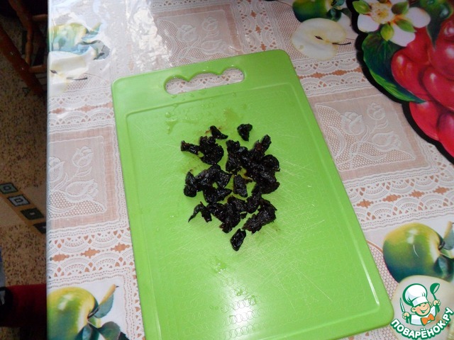 Чернослив предварительно замачиваем в горячей воде на 10 минут, промываем и тоже измельчаем.