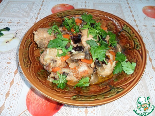 | Похожие рецепты у вас уже есть, но этот рецепт мне очень нравится и хочется поделиться им с поварятами. Вкус у блюда кисло-сладкий с ноткой чернослива. |
