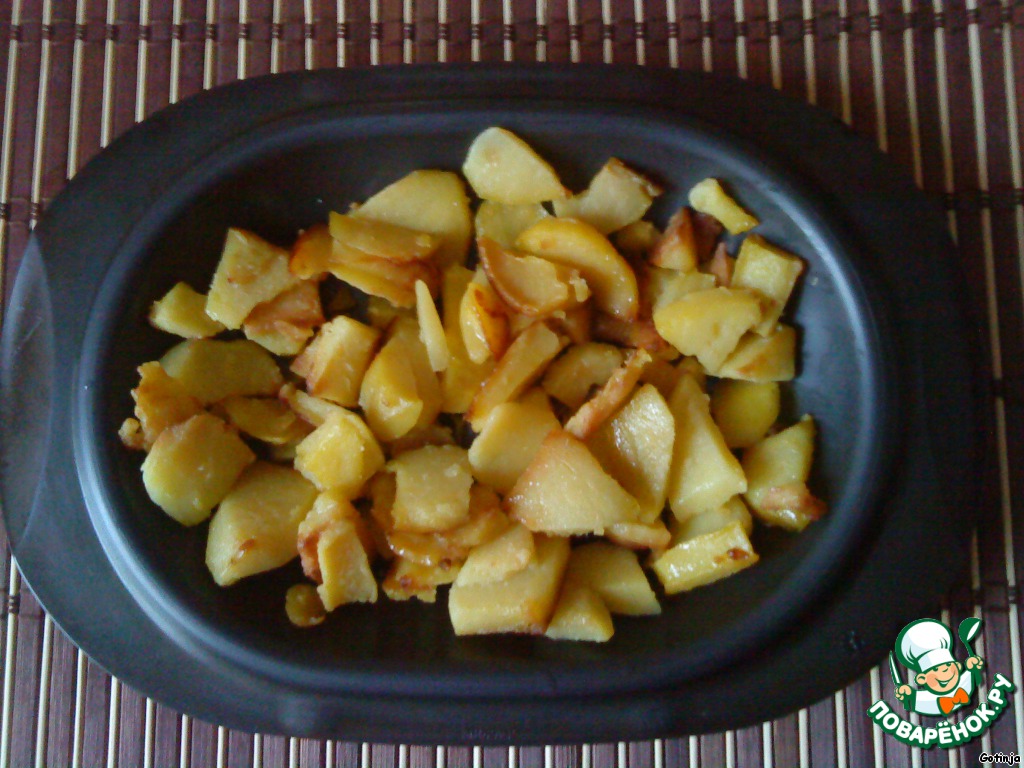 Берём жаростойкую посуду, выкладываем в неё жареную картошку (холодную).