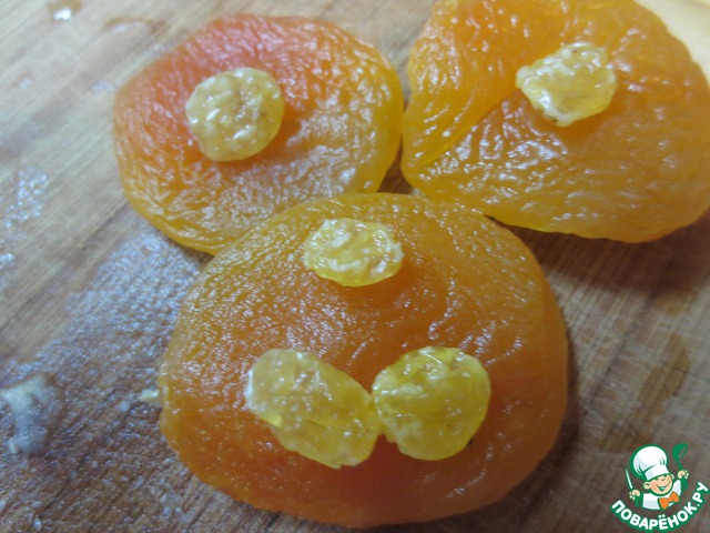 Курагу также порезать на несколько частей.