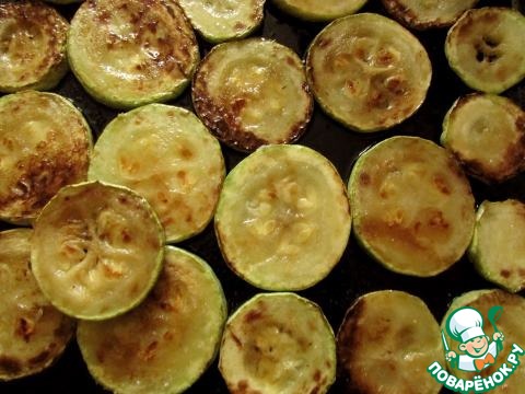 Кружки кабачка слегка обжариваем с обеих сторон на растительном масле. Даём им слегка остыть. И приступаем к сборке нашей запеканки.