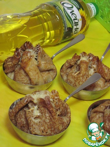 Возьмем заранее приготовленные на подсолнечном масле ТМ "Олейна" блины.