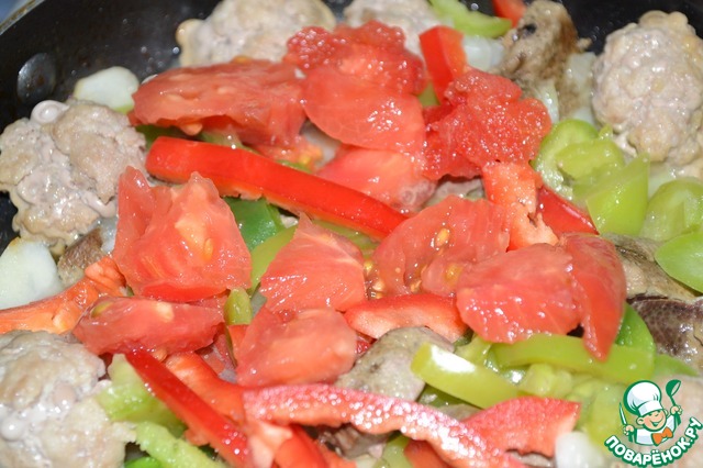 Добавить нарезанный помидор. Прожарить в течении 1 минуты.